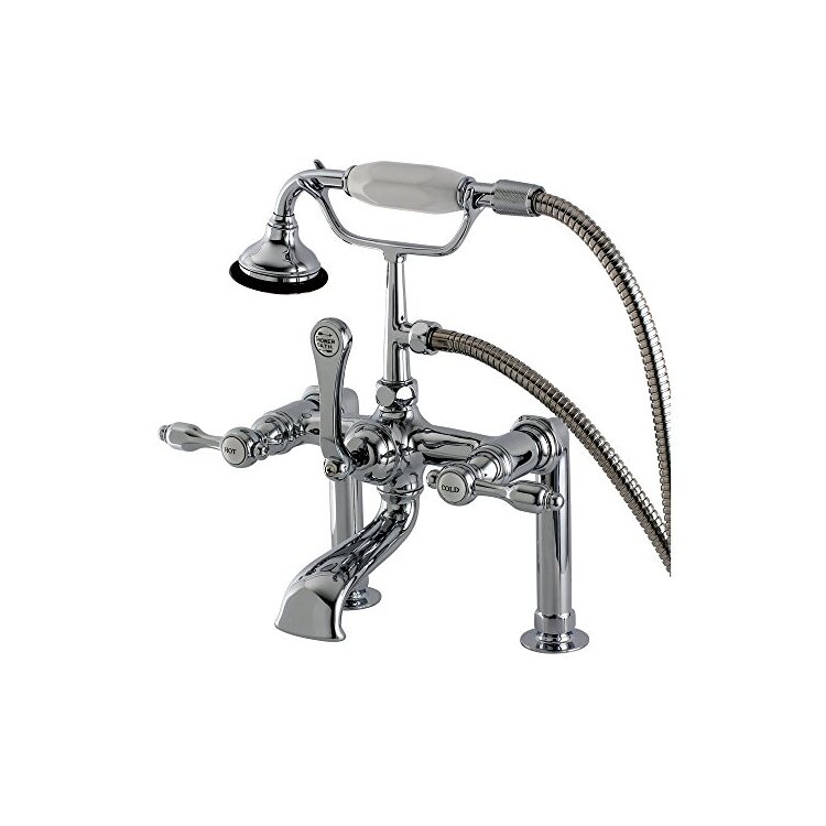 • Deck Mount Clawfoot Tub Faucet Polished Chrome Brass Material 3 Handle Lever - Kingston Brass image - 1