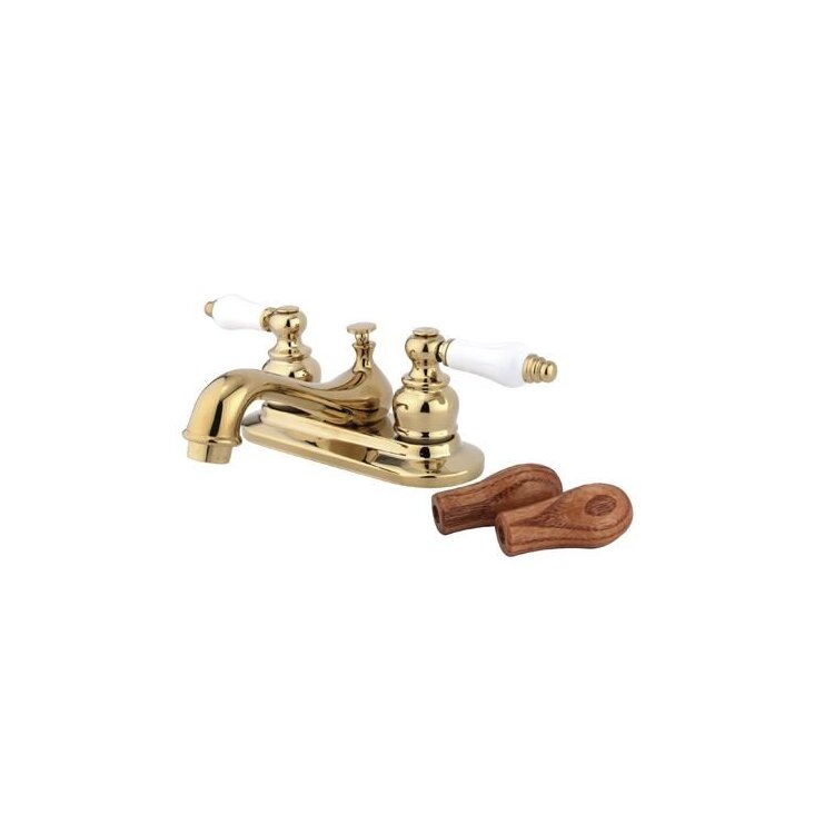 • Polished Brass Water Saving Restoration Lavatory Faucet with Ceramic Handles - Kingston Brass image - 1