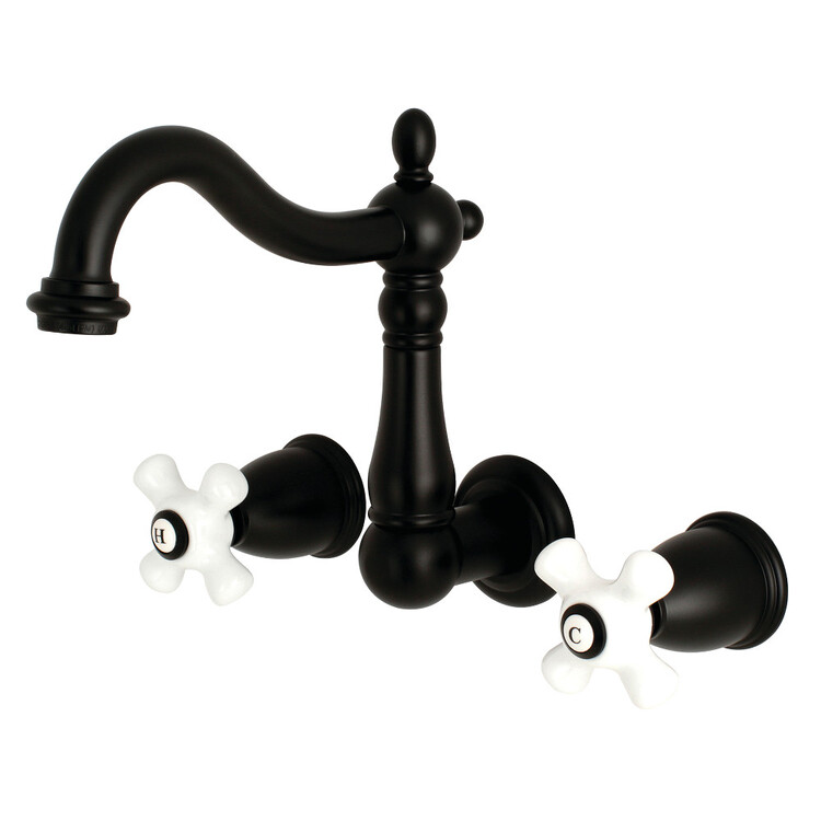 • Kingston Brass KS1250PX 8-Inch Center Wall Mount Bathroom Faucet, Matte Black image - 1
