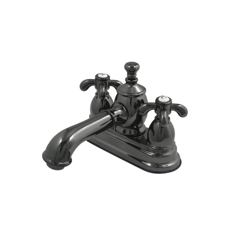 • NS7000TX Water Onyx 4 inch centerset lavatory faucet with cross handles and brass pop up drain, Black Nickel image - 1