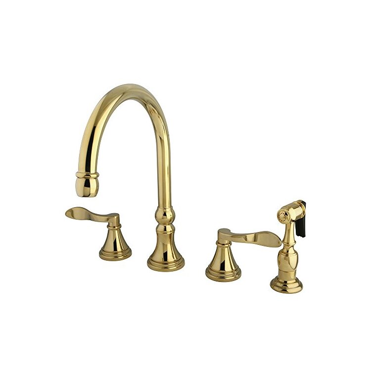 • Polished Brass Double Handle Deck Mount Kitchen Faucet & Sprayer - Kingston Brass image - 1