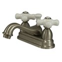 • Kingston Brass Restoration Two Handle 4" Centerset Lavatory Faucet with Brass Pop-up image - 1