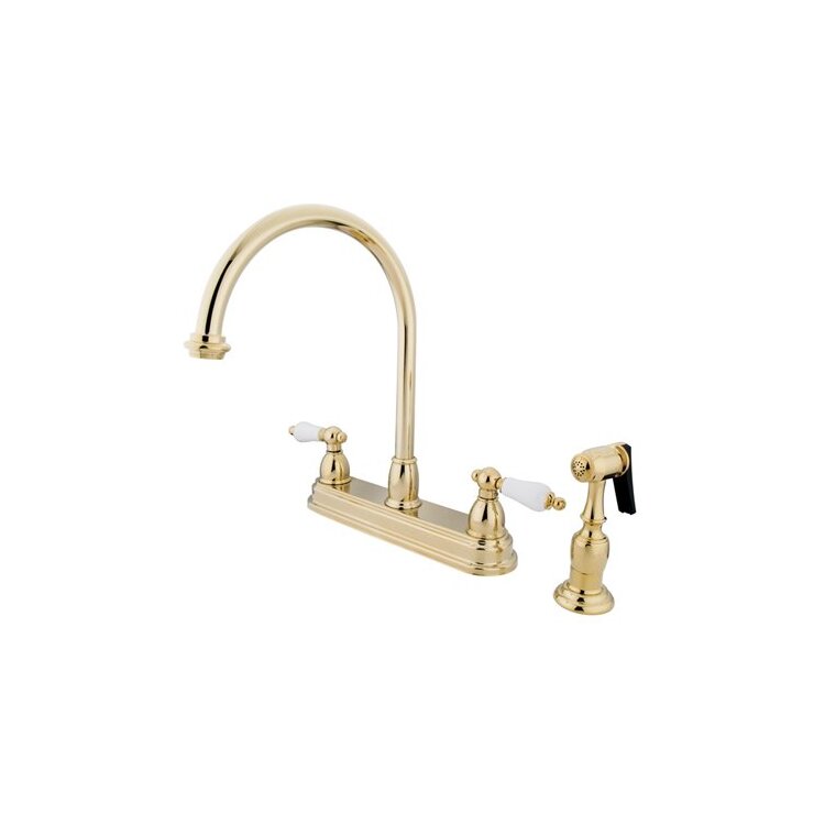 • Kingston Brass Restoration Two Handle 8" Kitchen Faucet with Brass Sprayer image - 1