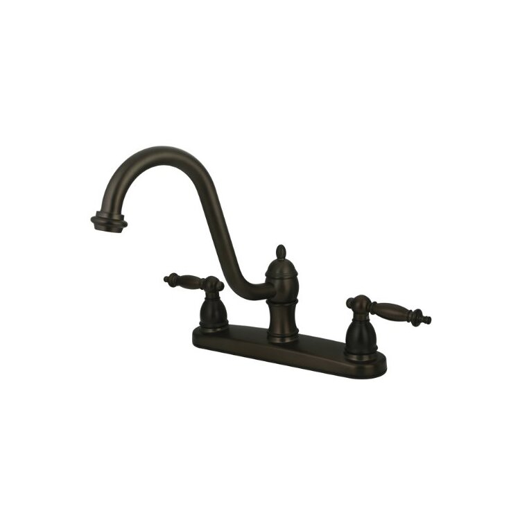 Oil Rubbed Bronze Deck Mounted Double Handle Kitchen Faucet with Side Spray - Kingston Brass