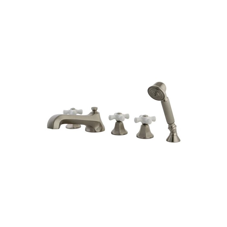 • Three Handle Roman Tub Filler with Hand Shower | Satin Nickel Finish - Kingston Brass image - 1