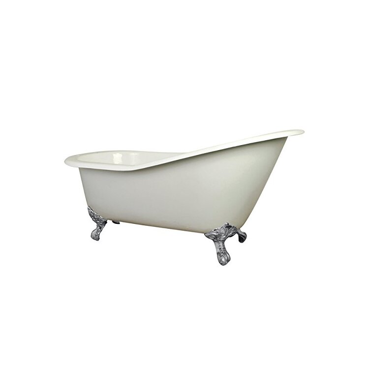 • Cast Iron Oval Slipper Bathtub 61 White with Pre - drilled Faucet Holes - Kingston Brass image - 1