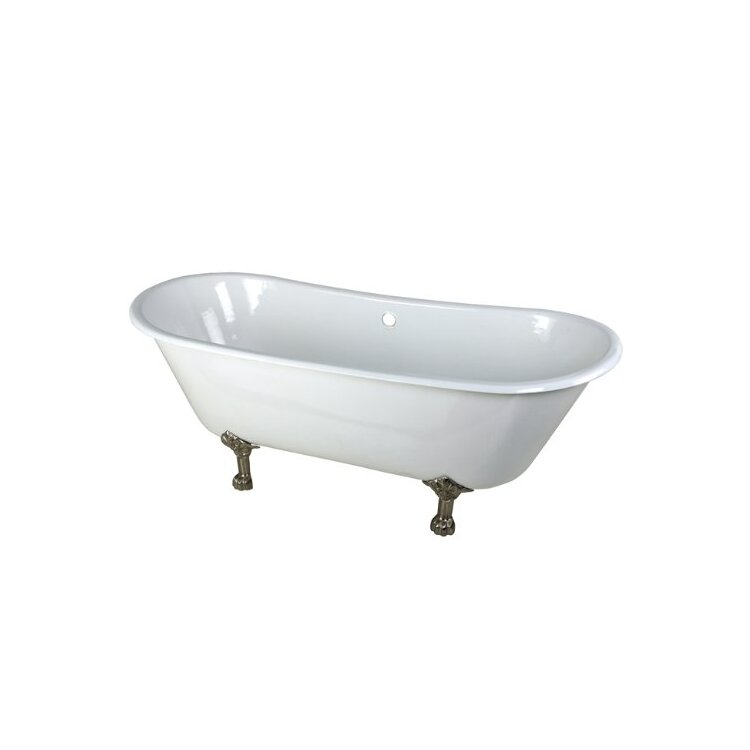 Cast Iron Double Slipper Clawfoot Bathtub 67 White Brushed Nickel - Kingston Brass