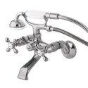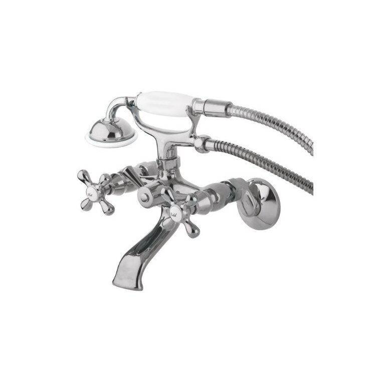Victorian Wall Mount Clawfoot Tub Faucet Brass Polished Chrome Cross Handle - Kingston Brass