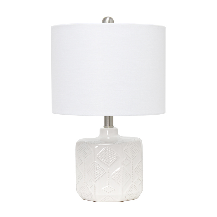 • Lalia Home 19" Contemporary Bohemian Ceramic Eyelet Pattern Floral Textured Bedside Table Lamp with White Fabric Shade, OffWhite image - 1