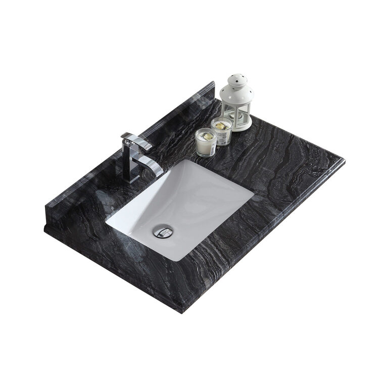 • Laviva Odyssey - 36 - Black Wood Marble Countertop with Rectangular Sink image - 1