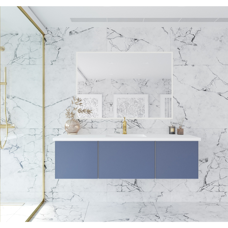 • Laviva Vitri 60 - Nautical Blue Single Sink Cabinet + Matte White VIVA Stone Solid Surface Center Sink Countertop image - 1