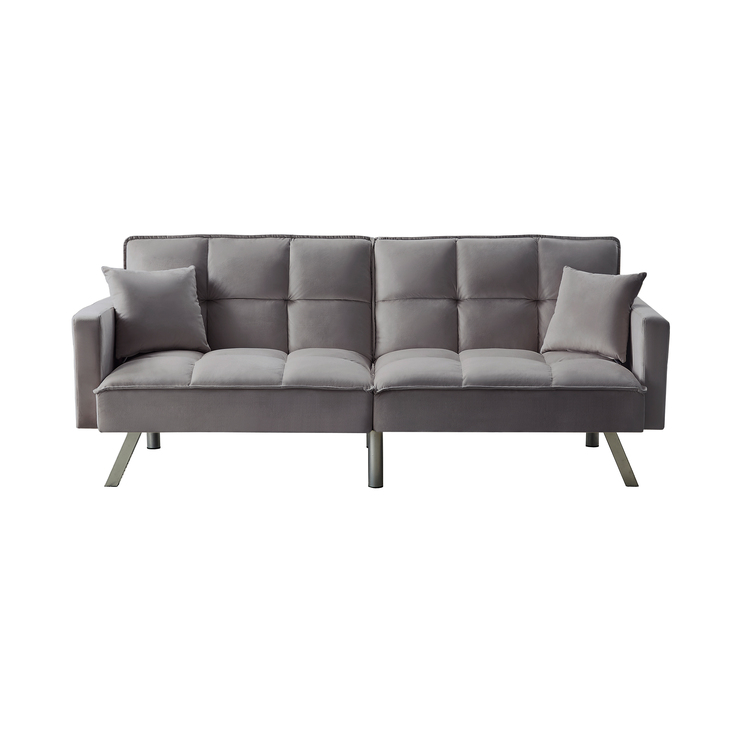 • Legend Vansen 80'' Convertible Velvet Sofabed Sleeper Futon With 2 Pillows,Grey image - 1