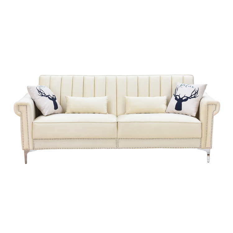 Legend Vansen 82.7'' Convertible Velvet Sofabed Sleeper Futon With 2 Pillows,Cream