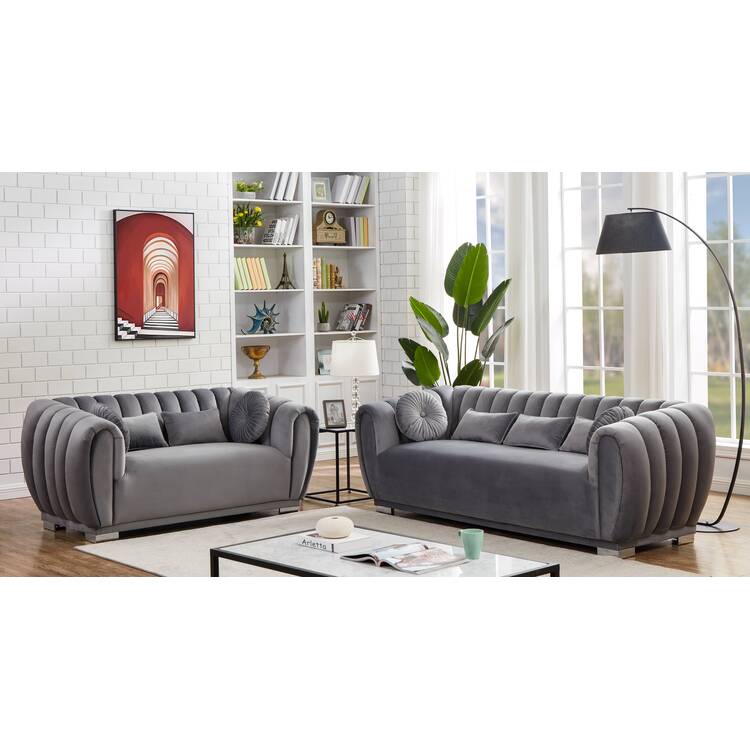 • Legend Vansen Velvet Sofa & Loveseat Set - Grey Living Room Furniture image - 1