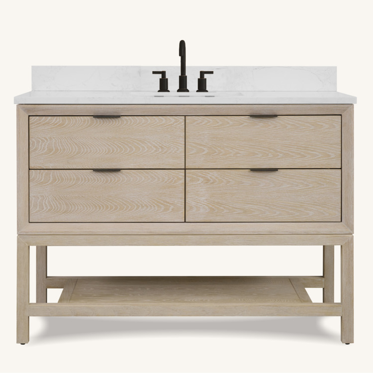 • Legion Furniture 48" VANITY WHITEWASHED OAK FINISH KD ON LEGS WITH 1" THICK WHITE ARTIFICIAL STONE image - 1