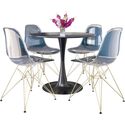 • LeisureMod 5-Piece Dining Set 35" Round Dining Table in Black Iron - 4 ABS Plastic Side Chair in Chrome - White Blue image - 1