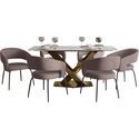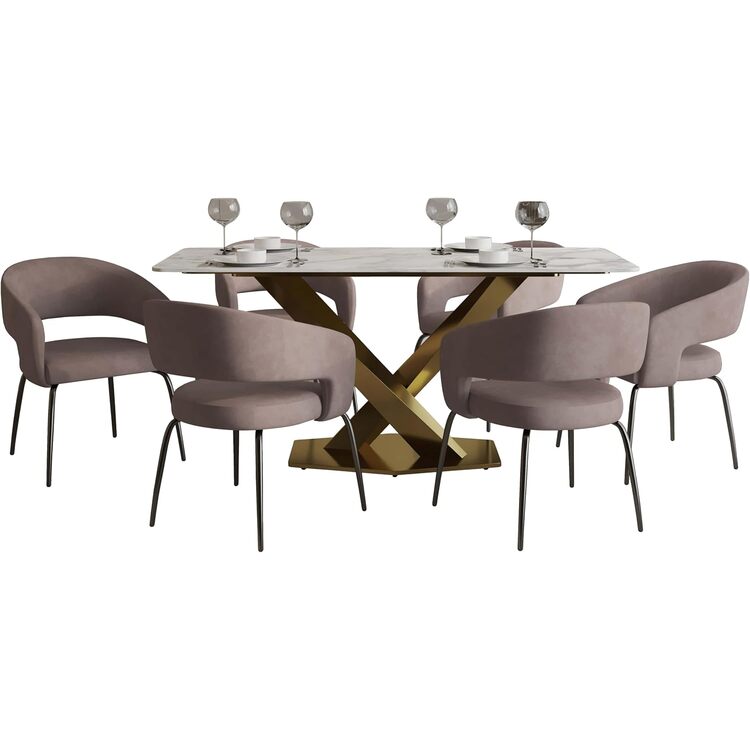 • LeisureMod 7-Piece Dining Set with Rectangular Sintered Stone Dining Table Gold Base and 6 Leather Dining Chairs with Iron Base image - 1