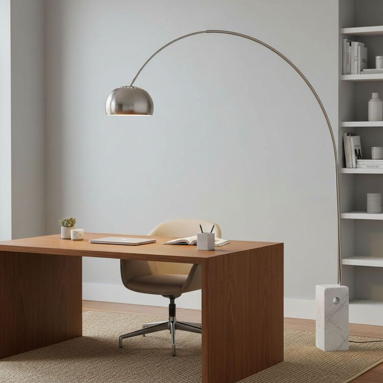 • LeisureMod Arco Lamp with Marble Cube Base image - 1