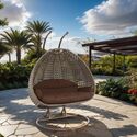 Wicker Hanging 2-Person Egg Porch Swing Chair with Brown Cushions