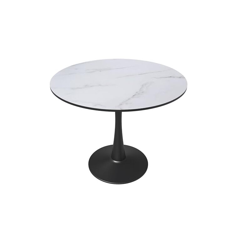 Leisuremod Bristol 35" round dining table Black base with marbled MDF top