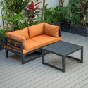 • LeisureMod Chelsea 3-Piece Sectional Loveseat and Coffee Table Set Black Aluminum with Cushions image - 1
