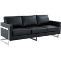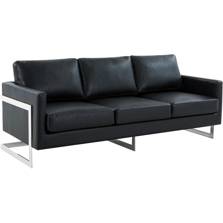 • LeisureMod Lincoln Black Leather Sofa With Chromed Frame image - 1