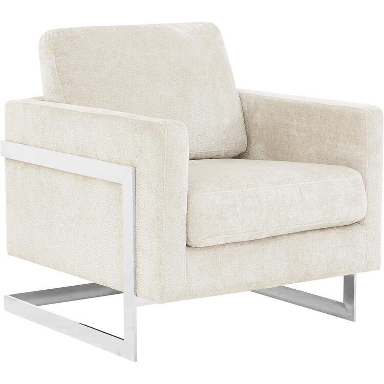 • LeisureMod Lincoln Grey Boucle Accent Armchair With Chromed Frame image - 1