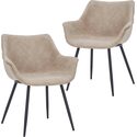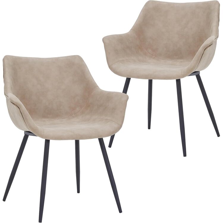 • LeisureMod Markley Modern Leather Dining Arm Chair Set of 2 in Taupe image - 1