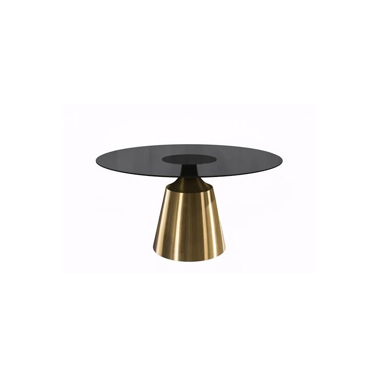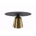 LeisureMod Prynn Series Round Dining Table Gold Base with 71 Round BLack Glass Top