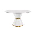 LeisureMod Qorvus Series Round Dining Table White\Gold Base with 60 Round White/Gold Sintered Stone Top