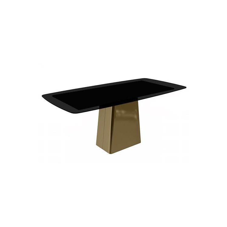 • LeisureMod Quinix Series Dining Table, Gold Base With 71" Black Glass Top image - 1