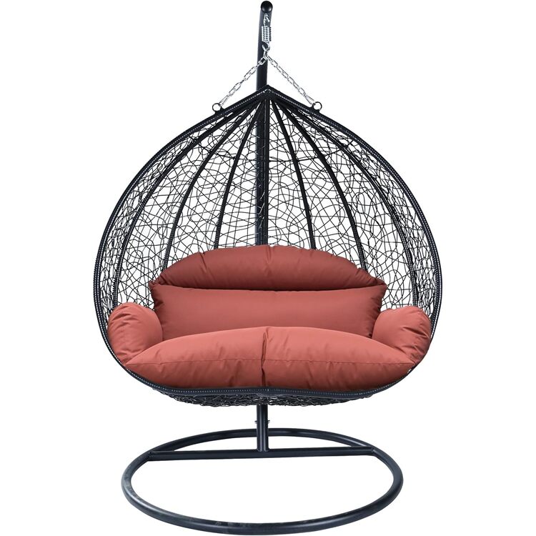 • Leisuremod Recluse Collection Modern Outdoor Swing Chair Black Frame with ES57 Dark Orange Cushion image - 1