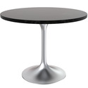 LeisureMod Verve Collection 36" Round Dining Table, Brushed Chrome Base with Black MDF Top