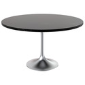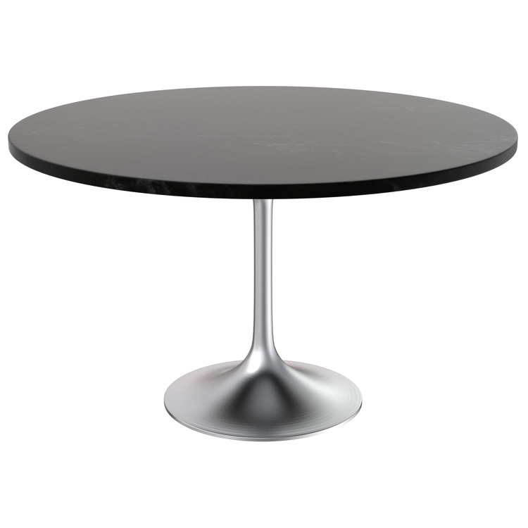 LeisureMod Verve Collection 48" Round Dining Table, Brushed Chrome Base with Black MDF Top