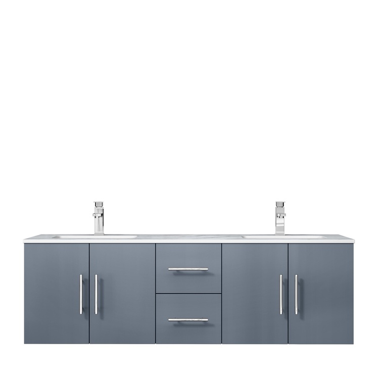 • Lexora Geneva 60 in. W x 22 in. D Dark Grey Double Bath Vanity and Carrara Marble Top image - 1