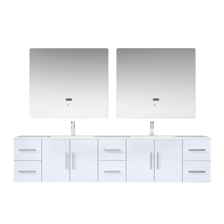 • Lexora Geneva 84 in. W x 22 in. D Glossy White Double Bath Vanity, Carrara Marble Top, and 36 in. LED Mirrors image - 1