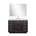 • Lexora Abbey 48 in W x 22 in D Black Oak Single Bath Vanity, White Quartz Top, Faucet Set, and 46 in Mirror image - 1