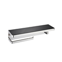 Lexora Bagno Bianca Stainless Steel Black Glass Shelf with Towel Bar & Robe Hook in Chrome