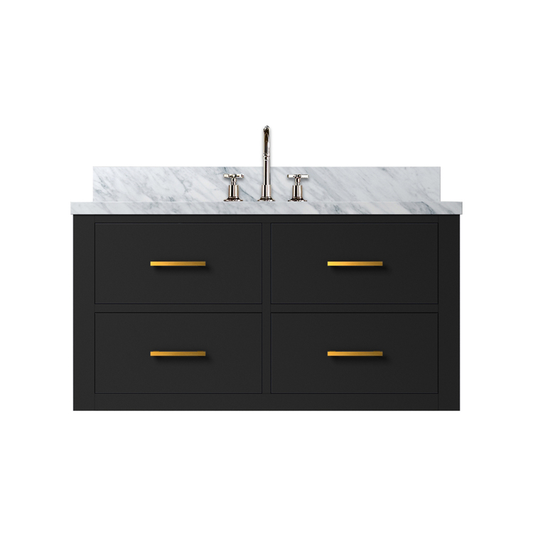 • Lexora Castor 36 in W x 22 in D Black Single Bath Vanity, Carrara Marble Top, and Faucet Set image - 1