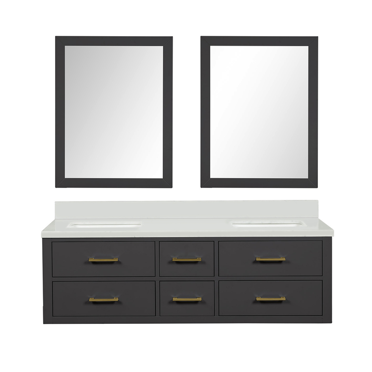• Lexora Castor 60 in W x 22 in D Black Double Bath Vanity, Cultured Marble Top, and 28 in Mirrors image - 1