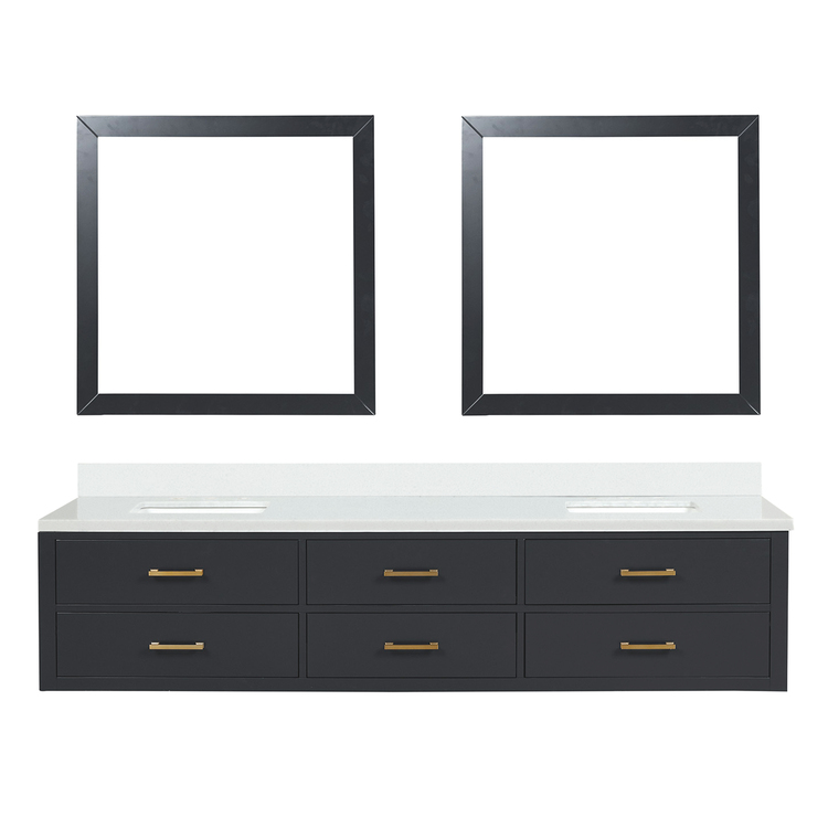 • Lexora Castor 84 in W x 22 in D Black Double Bath Vanity, Cultured Marble Top, and 36 in Mirrors image - 1