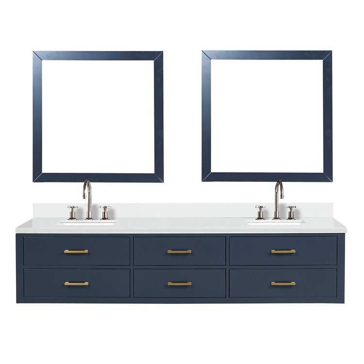 • Lexora Castor 84 in W x 22 in D Blue Double Bath Vanity, White Quartz Top, Faucet Set, and 36 in Mirrors image - 1