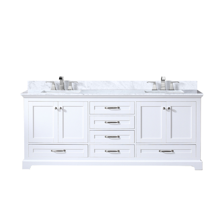 • Lexora Dukes 80 in. W x 22 in. D White Double Bath Vanity, Carrara Marble Top, and Faucet Set image - 1