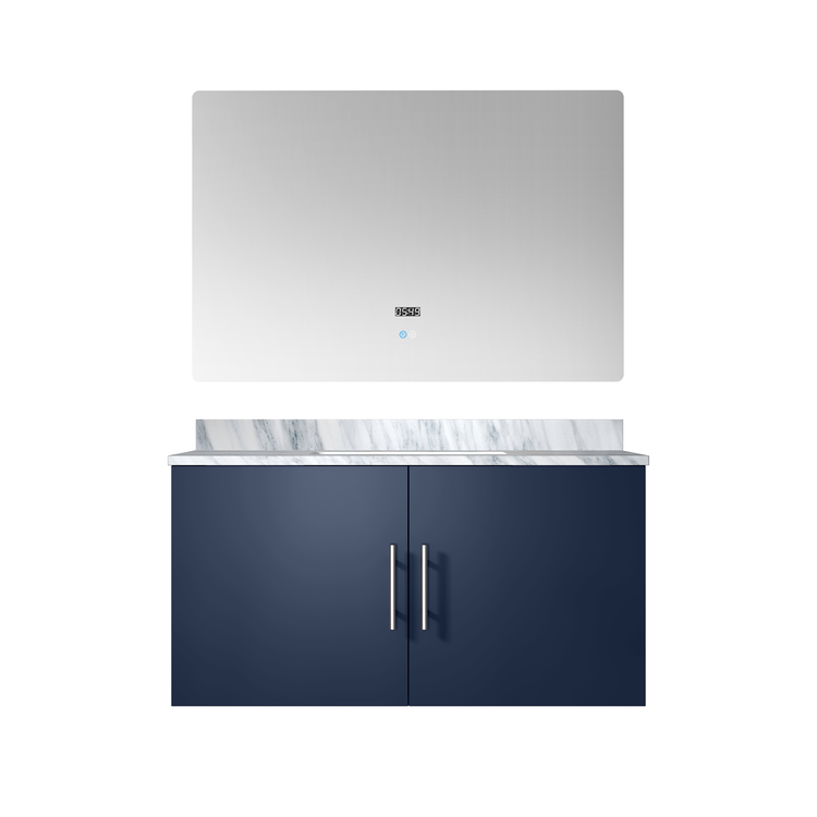 • Lexora Geneva 36 in. W x 22 in. D Navy Blue Bath Vanity, Carrara Marble Top, and 36 in. LED Mirror image - 1