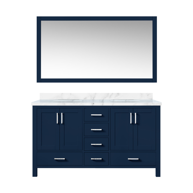 • Lexora Navy Blue Bath Vanity Set with Marble Top & Mirror image - 1