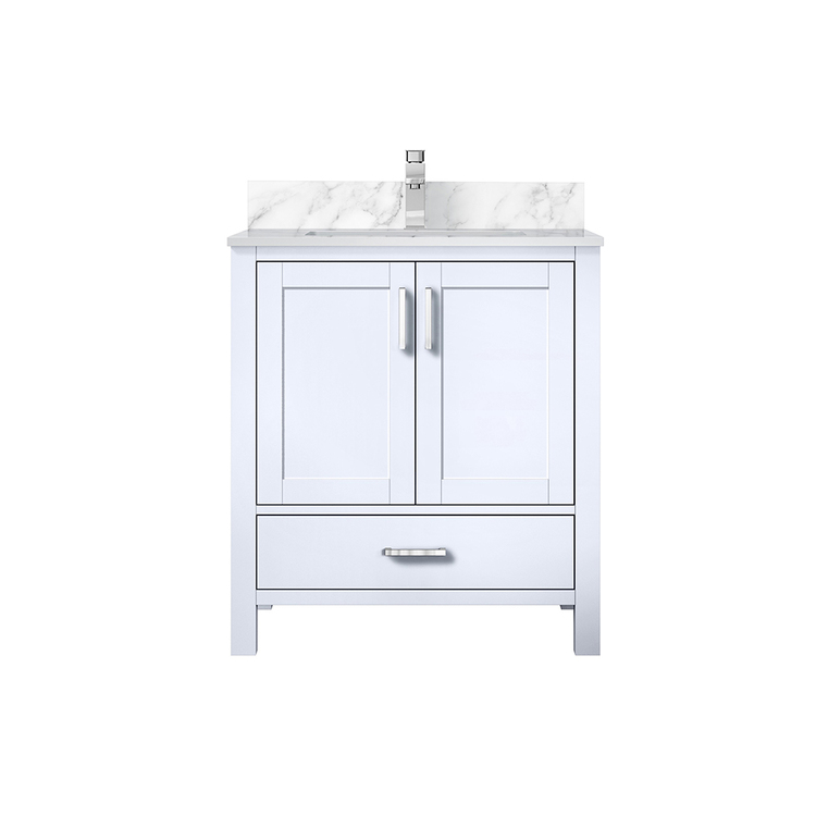 • Lexora Jacques 30 in. W x 22 in. D White Bath Vanity, Carrara Marble Top, and Faucet Set image - 1