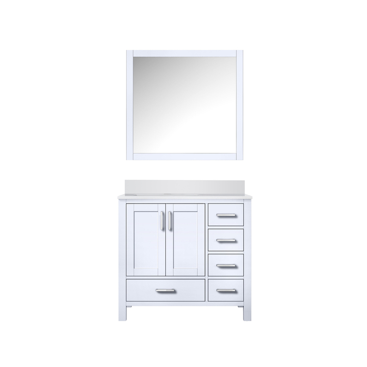 • Lexora Jacques 36 in. W x 22 in. D Left Offset White Bath Vanity, White Quartz Top, and 34 in. Mirrors image - 1