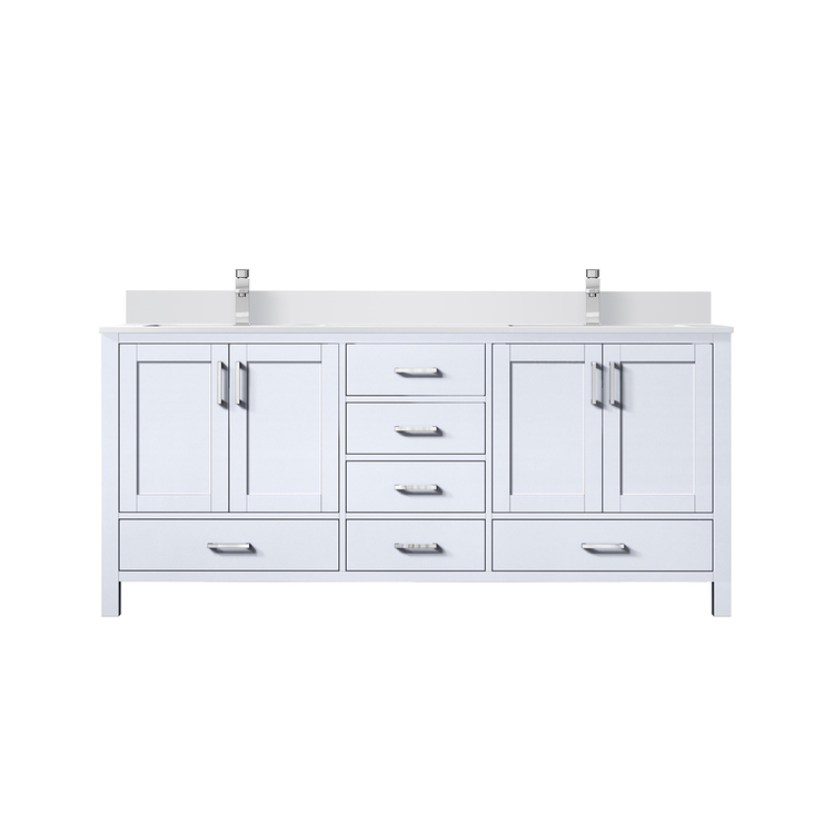 • Lexora Jacques 72 in. W x 22 in. D White Double Bath Vanity, White Quartz Top, and Faucet Set image - 1
