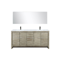 Lexora Lafarre 72 in W x 20 in D Rustic Acacia Double Bath Vanity, White Quartz Top, Gun Metal Faucet Set and 70 in Mirror