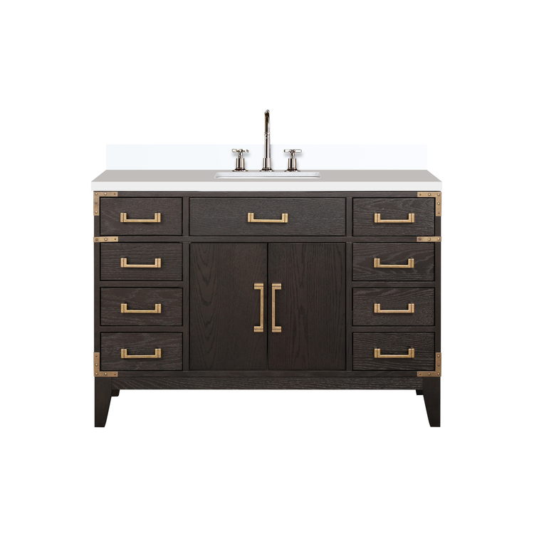 • Lexora Laurel 48 in W x 22 in D Brown Oak Single Bath Vanity, White Quartz Top, and Faucet Set image - 1